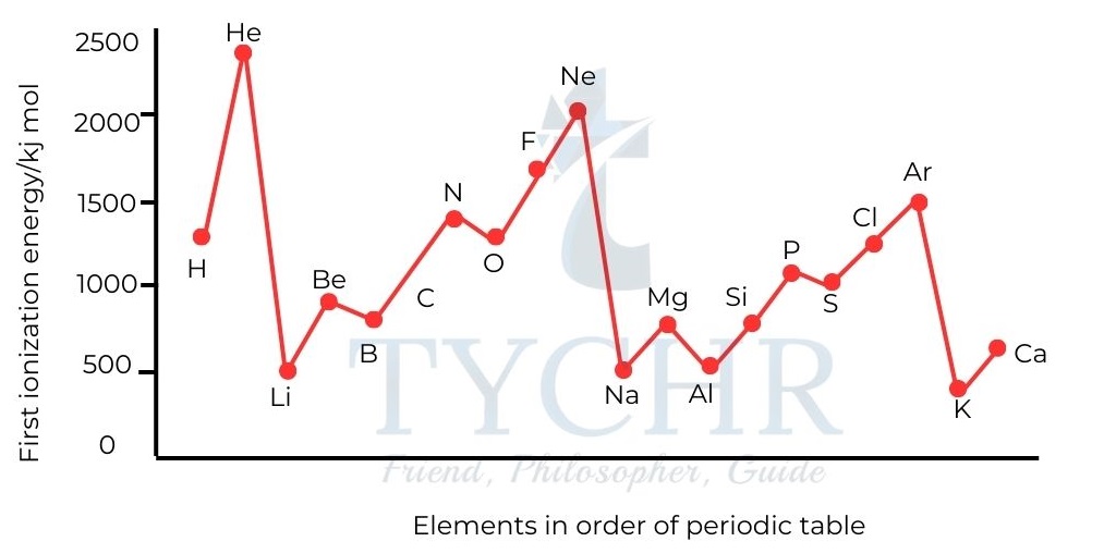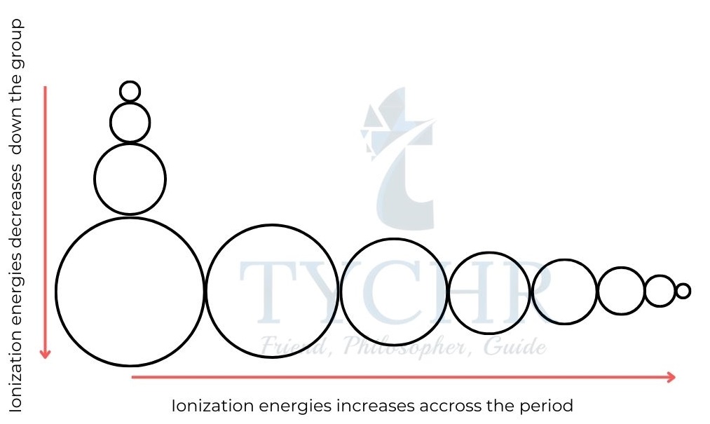 - The ionic radii decrease from Groups 1 to 14 for the positive ions. The ions Na+, Mg2+, Al3+, and Si4+ all have the same electron configuration (1s22s22p6).