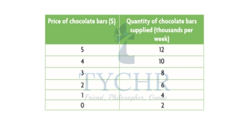 From the above equation, we can draw a table and a supply curve; by substituting different values of ‘P’ we can get the quantity supplied.