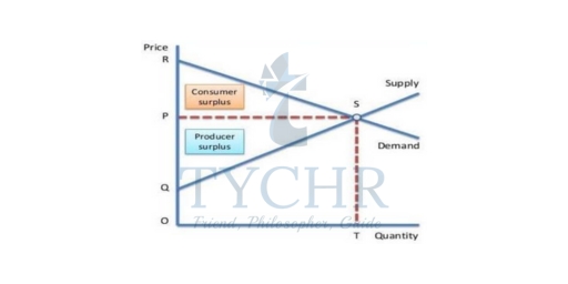 In competitive market equilibrium, as shown in the above figure, production of goods occurs where MB=MC, also the point of Social Surplus.