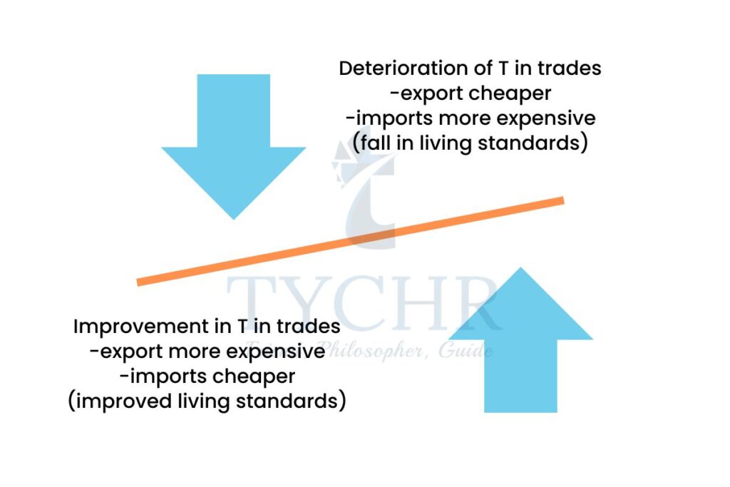 • Deterioration in the terms of trade reduces the standard of living as more exports have to be sold to pay for the same volume of imports.