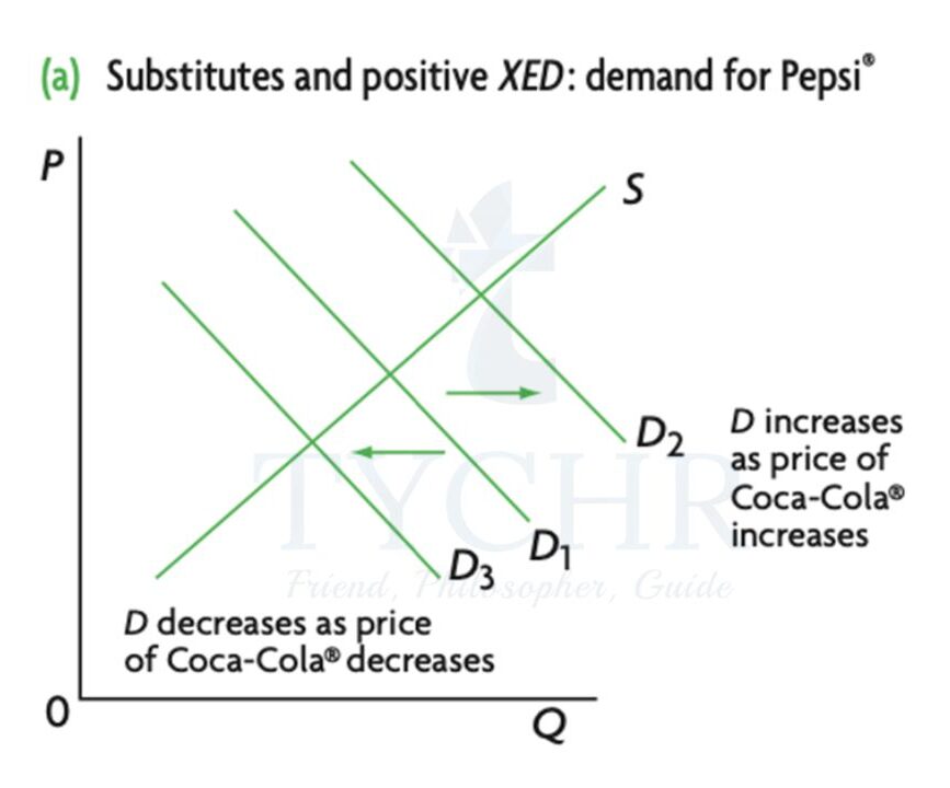 Note: In substitute goods Larger XED= Greater substitutability between 2 goods= Larger shift in demand curve due to price change.