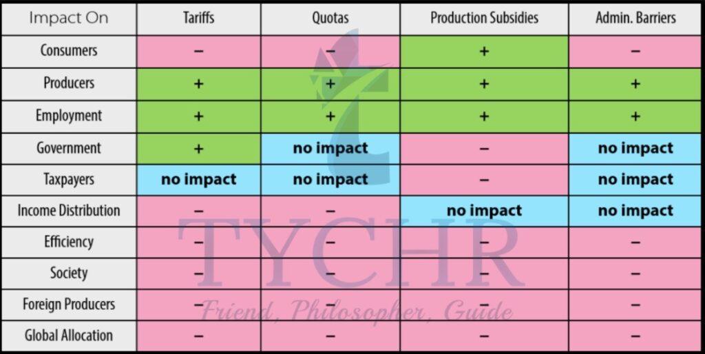 - Trade protection benefits only workers and producers. Producer gain comes at the expense of higher production costs and reduced efficiency.