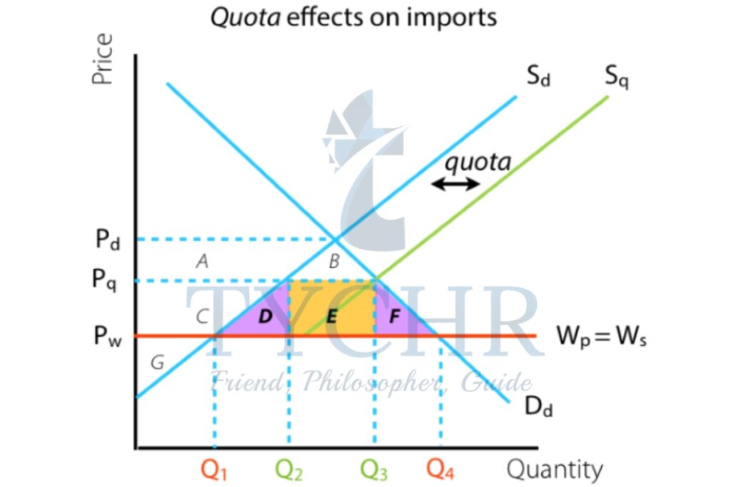 - Governments issue a number of quota licenses that determine the legal limit on the quantity of imports, and the license holders gain revenues.