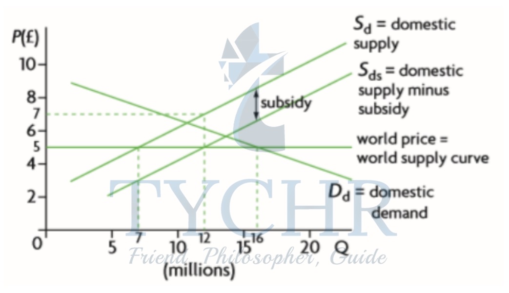 - Government expenditure and tax payers: Government expenditure increases from zero to an amount equal to the subsidy per unit.