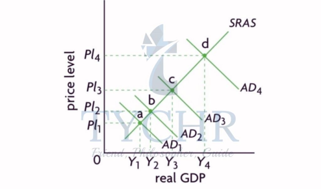 - Demand-pull inflation – inflation caused by increases in AD, which is called by changes in the AD determinants. Involves excess of AD over AS at full employment – and there would be an increase in AD.