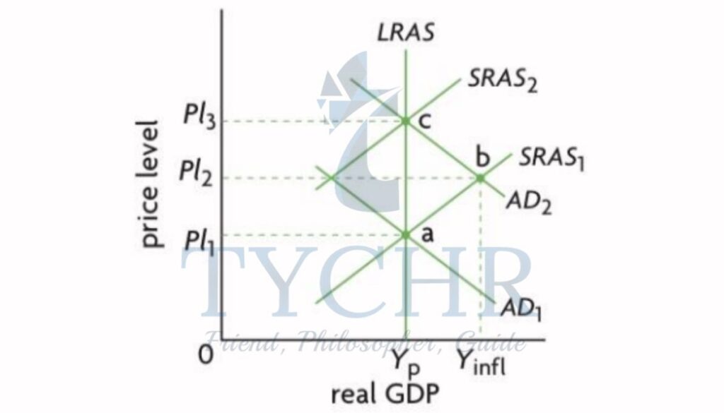 - Inflationary gap (more than Yp): unemployment < natural rate. Cyclical unemployment = O.