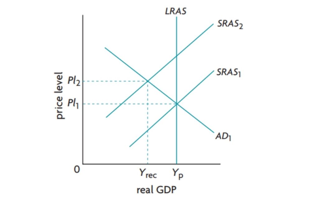 - Not a recessionary gap because the SRAS curve, not the AD curve moves.