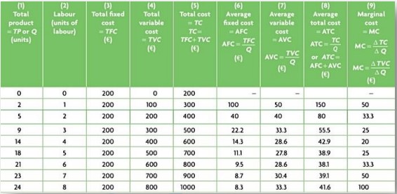 Note: In the short run, the firm’s TC= TFC + TVC. But in the long run, there are no fixed costs, therefore a firm’s total cost = variable costs.