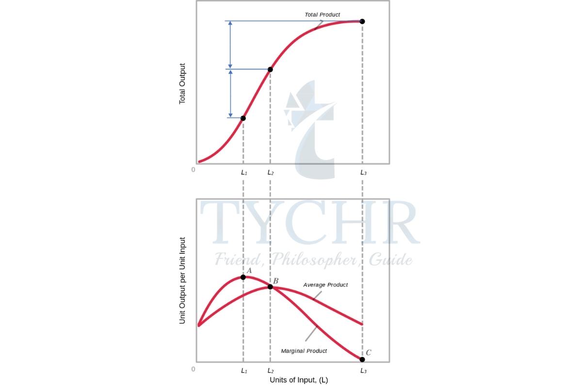Total product, marginal product and average product