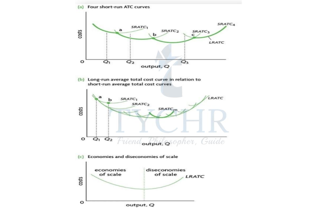 The long run ATC curves (LRATC) is defined as a curve that shows the lowest possible average cost that can be attained by a firm for any level of output, when all of the firm’s input are variable. It is a curve that just touches (is tangent to ) each of many short run average total cost curves. It is also known as a planning curve.