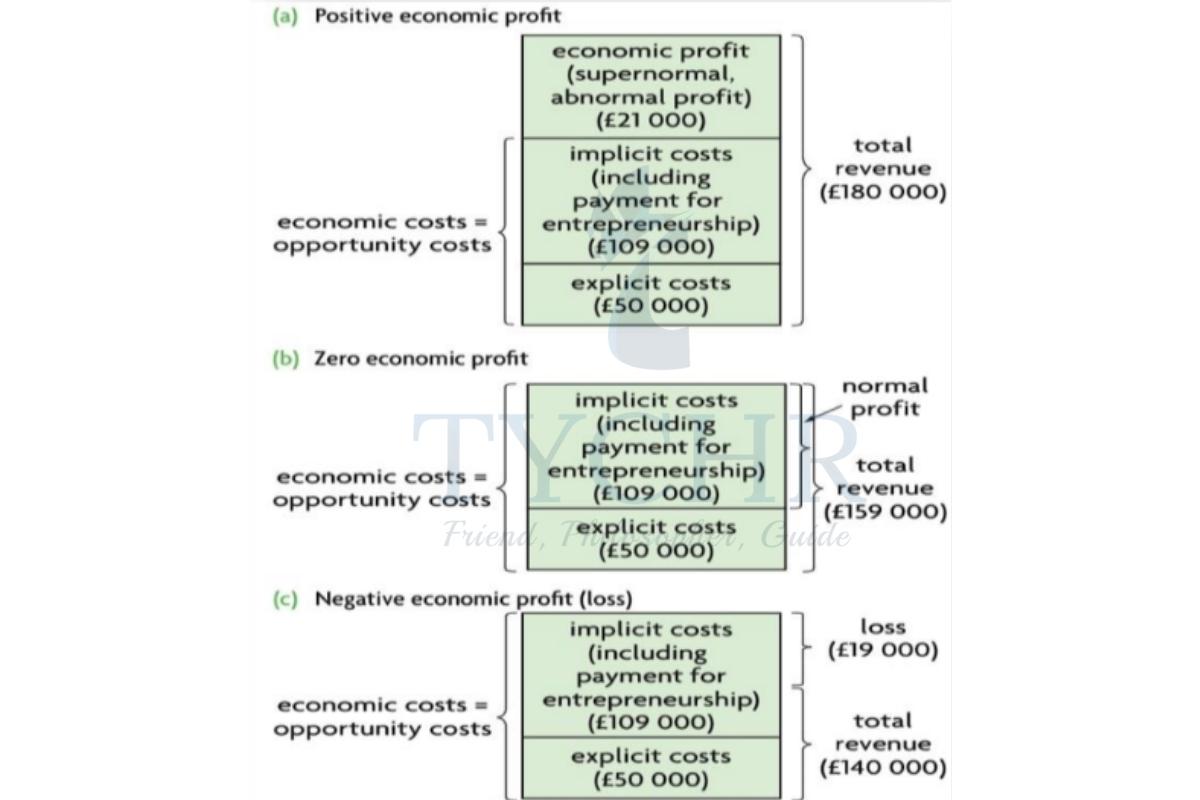 - Positive Economic Profit (supernormal profit) : TR > Economic profit.
