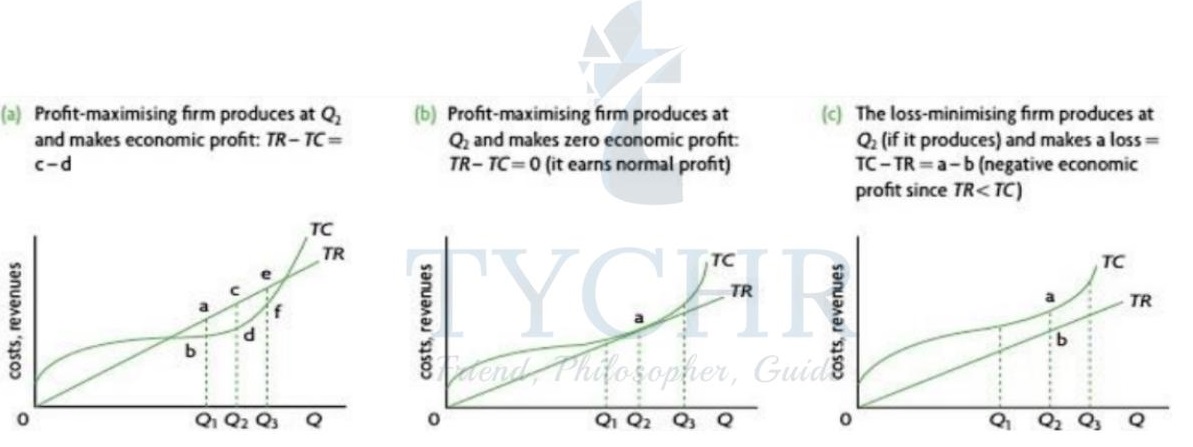 The firm’s profit maximisation rule is to produce the level of output where TR – TC = Economic Profit. (economic profit is as large as possible)
