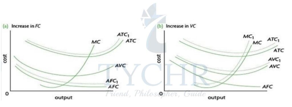 Change in resource prices or a change in technology changes the cost curves. If both increase – high cost of production – will shift TFC, TC, AFC, ATC curve upwards.