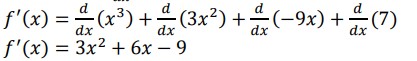 𝑓′(𝑥) = 𝑑(𝑥3 − 𝑥 + 3)/𝑑𝑥